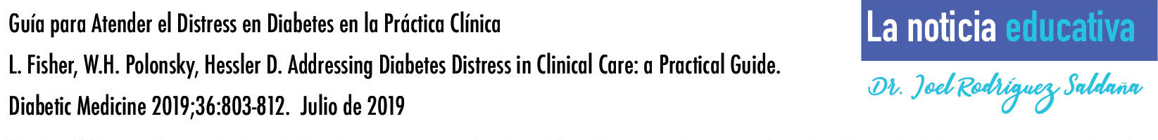 En los últimos años se le ha dedicado cada vez más atención a los aspectos emocionales de la diabetes y a su manejo. El “distress por diabetes” es un concepto central en estas actividades, y se refiere a las causas y la intensidad del distress emocional asociado con la atención de la diabetes. El distress por diabetes se define como las preocupaciones, temores y amenazas asociadas con las demandas de una enfermedad crónica como la diabetes. A medida que ha aumentado el interés por el distress en diabetes, también se han reconocido las dificultades para integrar e implementar la investigación clínica sobre el tema “al mundo real”. Esta revisión tiene como objeto ayudar a los médicos y a los profesionales de salud a atender el distress por diabetes en la práctica clínica, incluyendo conocer en qué consiste, los métodos actuales para valorarlo y vigilarlo, las fuentes de información disponibles para realizar intervenciones, los temas que deben considerarse y las intervenciones que pueden integrarse en la práctica clínica, en personas con diabetes tipo 1 y diabetes tipo 2.